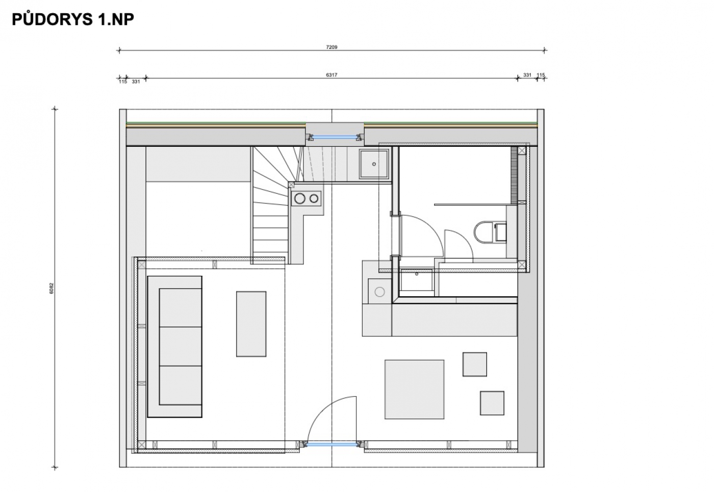 Na podzim roku 2020 jsme koupili starou chatu u řeky. Jednalo se o tehdejší typizovanou seriovou výrobu a konstrukci Javorina ze Slovenska. Protože chata neodpovídala technickým standardům dnešních dřevostaveb, zachovali jsme z ní pouze krov, který zároveň tvoří celou konstrukci chaty a zůstala podlaha v přízemí a v podlaha v podkroví.