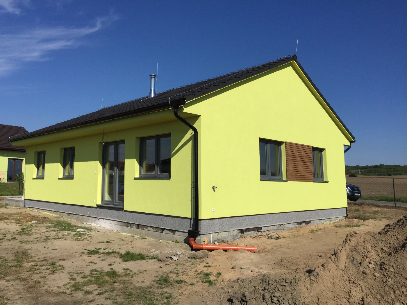 Menší dřevostavba pro rodinu s malými dětmi a pejskem. Stavěli jsme v klidné části Štětí obklopené přírodou a lesy. Dřevostavba byla původně navržena a vyprojektována i s garáží. Tu jsme nakonec, ale po dohodě s majiteli v první fázi nerealizovali s tím, že majitelé spíše vybudují otevřený přístřešek na auto.