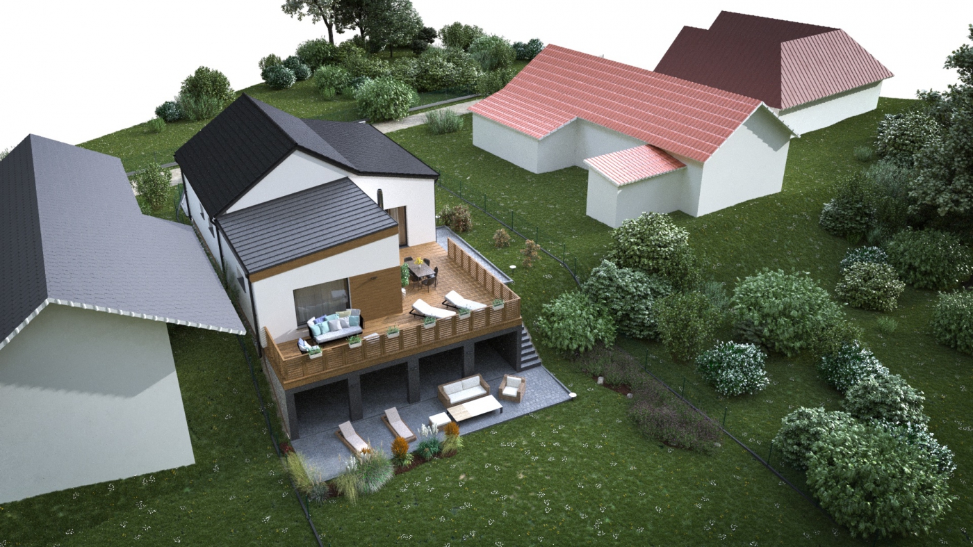 Atypický bungalov zasazený v proluce mezi starými původními domy ve slepé ulici. Z pohledu do ulice, musel být dodržen tradiční uliční ráz daný starou okolní zástavbou tzn. přízemní dům se sedlovou střechou a ,,přístavkem". Naopak pohled, který se otevírá do víceúrovňové zahrady, už mohl být koncipován v moderním duchu. V projektu bylo využito svažitosti pozemku a na zděných pilířích vynesena pohodlná a prostorná terasa s výhledem na řeku a vzrostlé stromy. Pod terasou vznikl zajímavý prostor, který může plnit funkci odpočinkové zóny a úloženého prostoru.