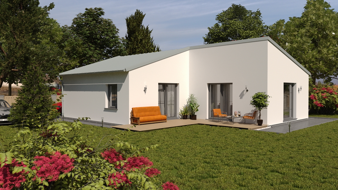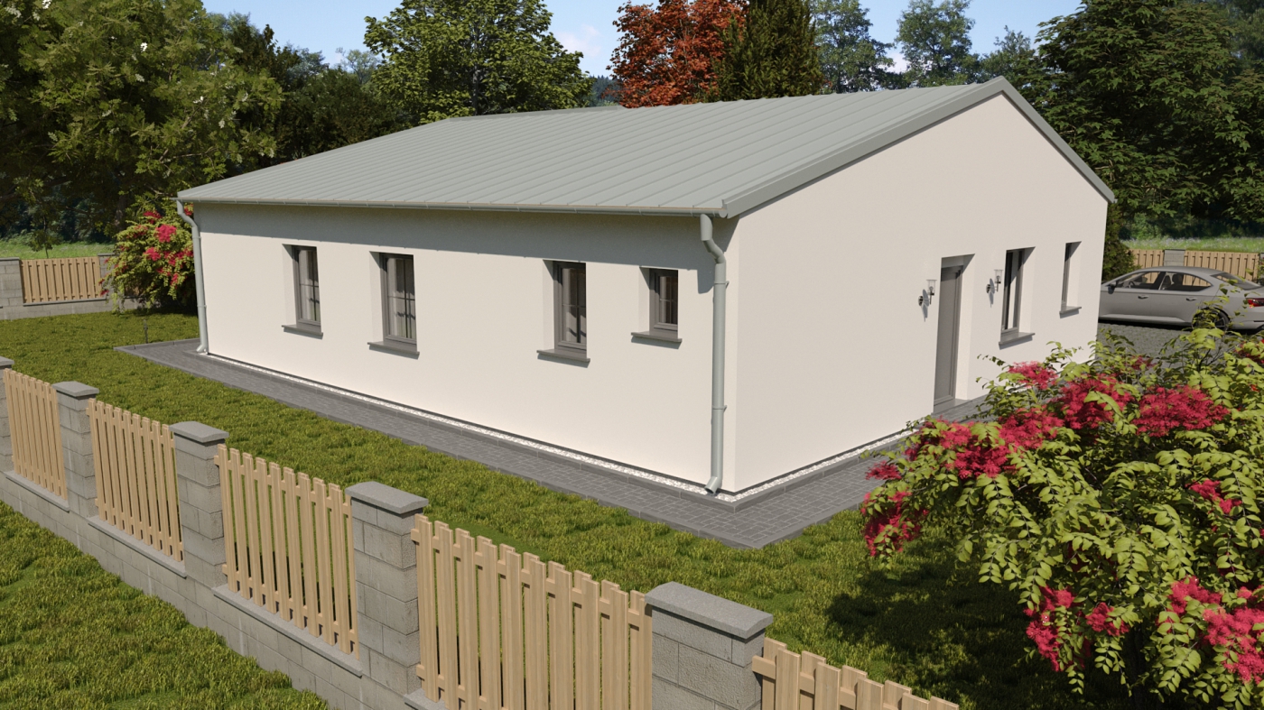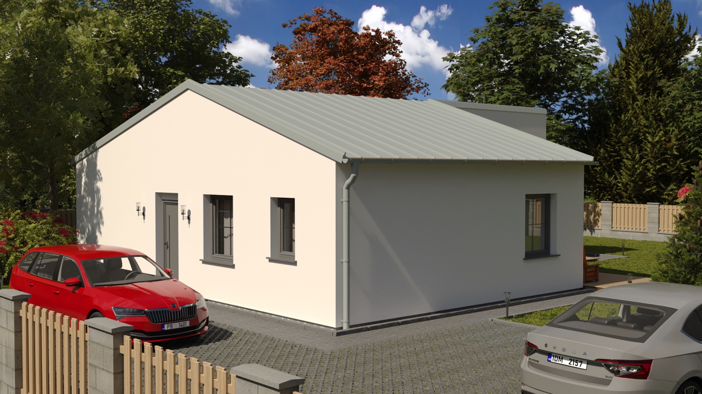 Tento moderní bungalov s netypickou střechou vyrostl na předměstí Mělníka. Zákaznice nejprve chtěla stavět větší dům, ale nakonec z osobních důvodů nechala projekt překreslit a dům, na který již bylo vyřízené stavební povolení se zmenšoval. Dům je členitý, uvnitř jsou prakticky dvě samostatné bytové jednotky, tak aby zákaznice a její dospívající syn měli každý svoje soukromí.