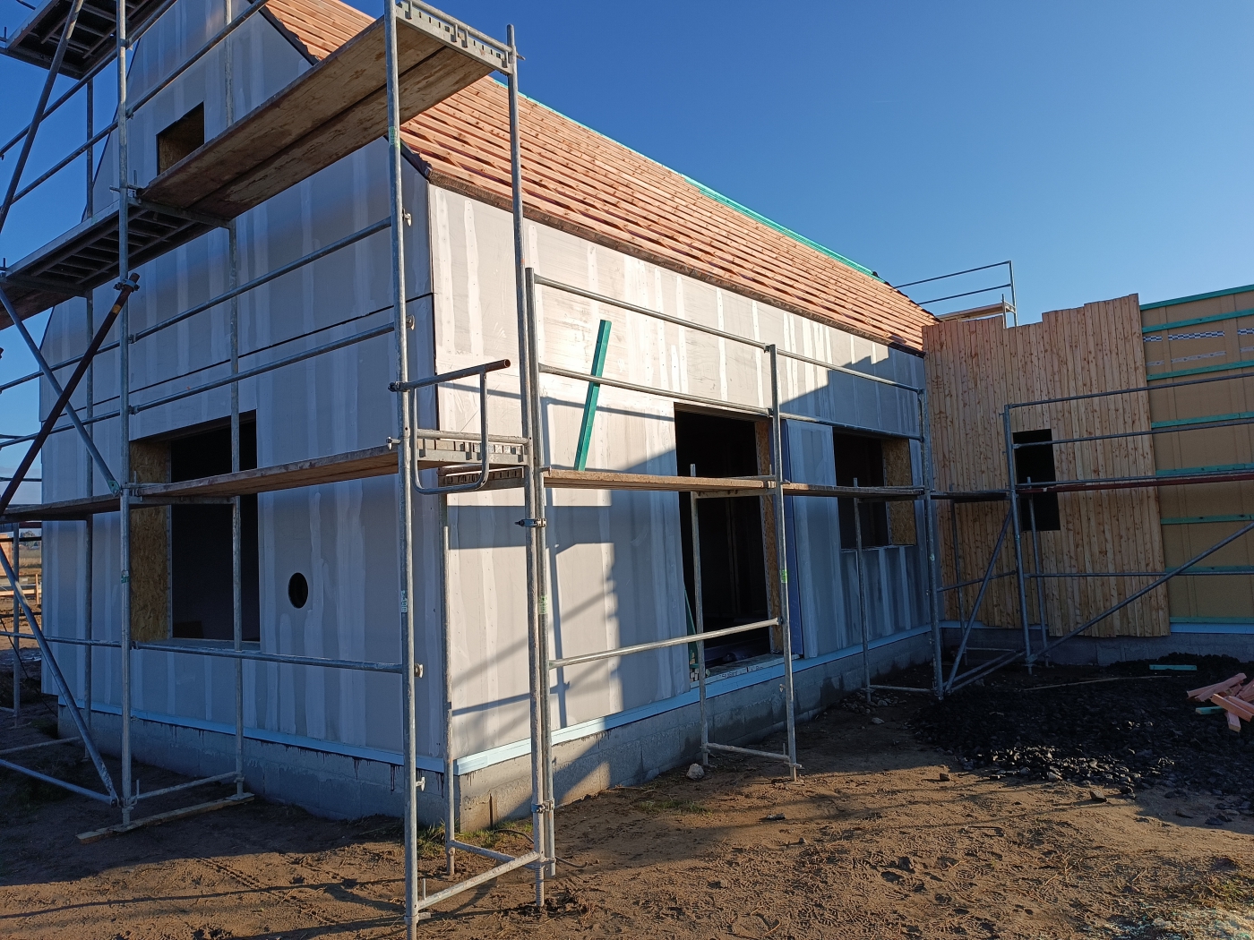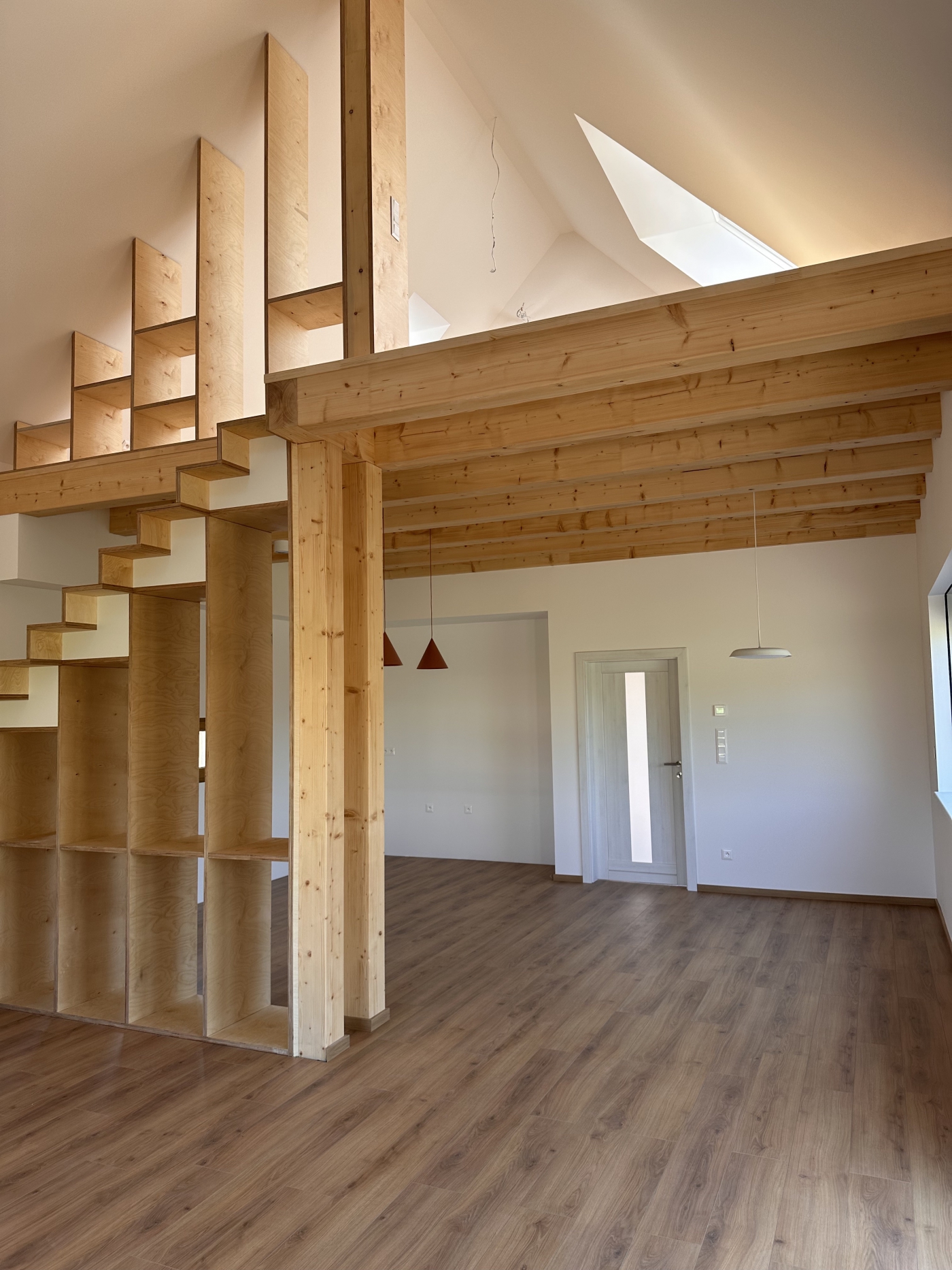 Bylo nám ctí podílet se na realizaci dřevostavby v klidné obci Kyškovice pro mladou rodinu s malými dětmi. Jednalo se o dům navržený architektem, takže nás čekala spousta výzev v podobě atypických prvků a jejich technického řešení, ať už mluvíme o kulatých oknech ve štítu, přes netypické schody, které zároveň tvoří knihovnu, až po mezonetovou pracovnu. Vzhled domu, ačkoli je v moderním stylu, přesto nijak neruší okolní vesnickou starou zástavbu. Věříme, že zákazníci zde prožijí mnoho spokojených let v blízkosti lesa a přírody přesto s ideální dostupnosti do blízkého města.