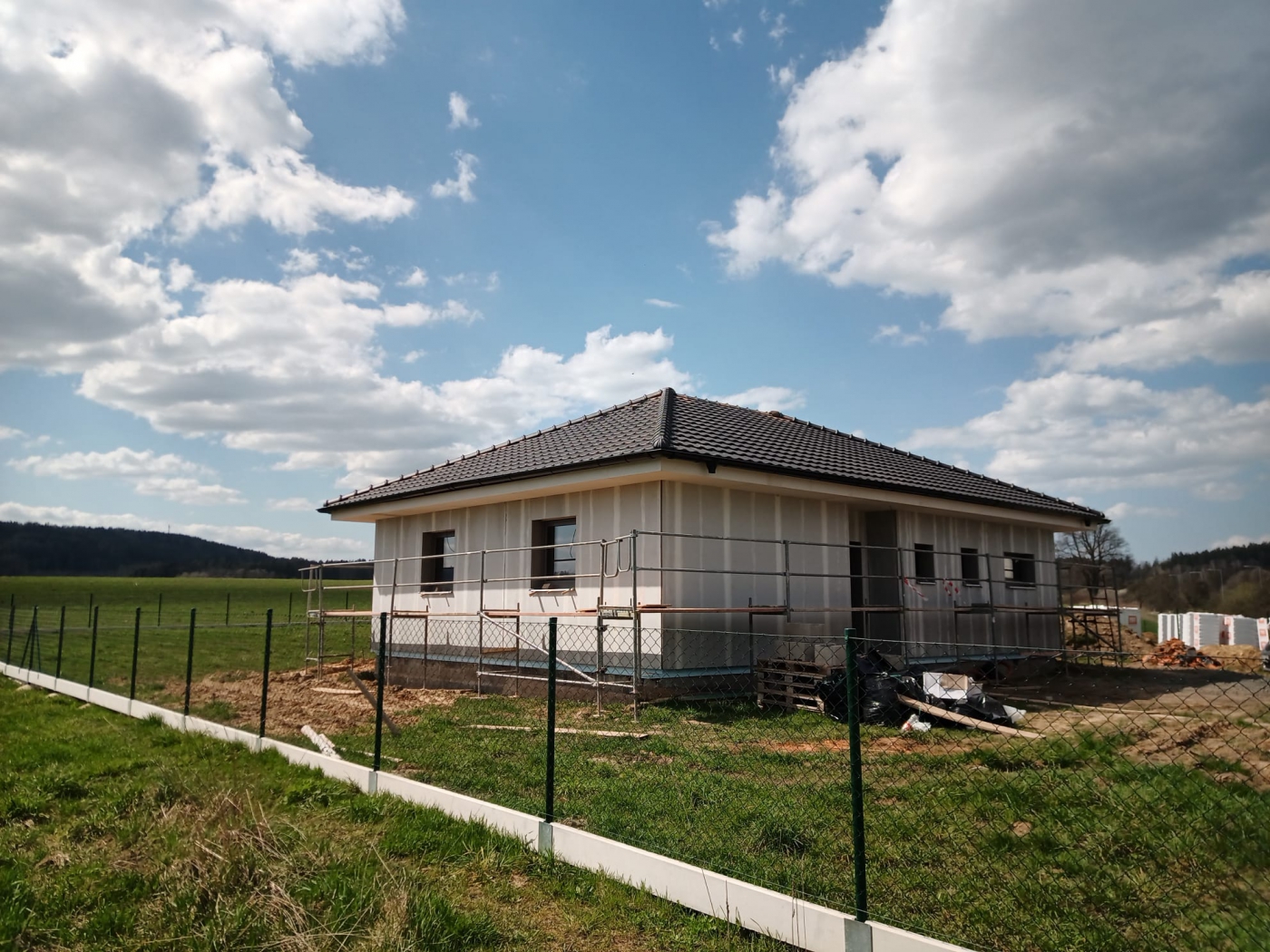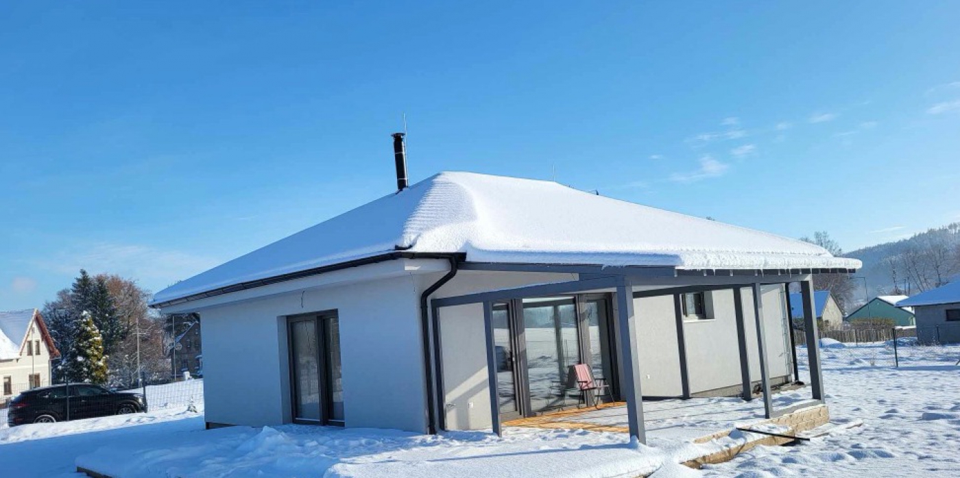 Po dlouhé době jsme realizovali dřevostavbu na pro vás vzdálenějším místě. Byl to faktor, který jsme na počátku velmi zvažovali. Zákazníci byli ale natolik milí, vstřícní a pro nás rozhodnutí, že jsme do toho šli. Díky tomu jsme prožili čásr roku v úžasném prostředí šluknovském výběžku a zrealizovali příjemný bungalov, který obklopují pastviny a hluboké lesy. V průběhu stavby jsme se se zákazníky domluvili ještě na realizaci zimní zahrady, o kterou si zvětšili obytnou část a komfort při výhledech do přírody.