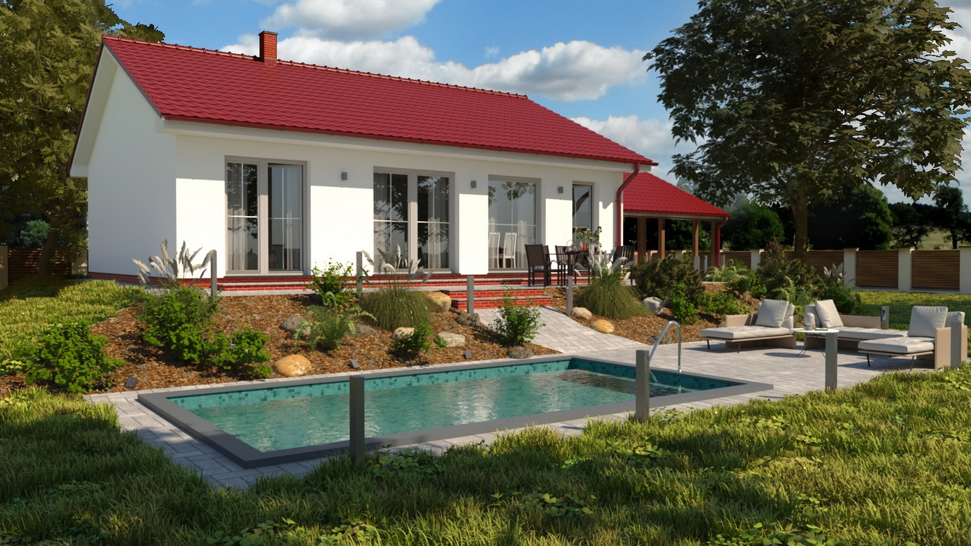 Tatol dřevostavba se nachází v povodňovém pásmu v navíc CHKO, bylo tedy třeba splnit několik podmínek tžzv. vyšší skoln střechy a základovou desku ve výšce 1,5m nad rostlým terénem. Vysoká základová deska na druhou stranu dala po dohodě s majiteli vzniknout podsklepené části dřevostavby. Dřevostavba byla zákazníkem zažizována ve venkovském stylu a návozem terénu k obývací části, vznikla prostorná vyvýšená terasa, kde majitelé odpočívají a kochají se výhledem na Labe a zahradz, která je pod úrovní.
