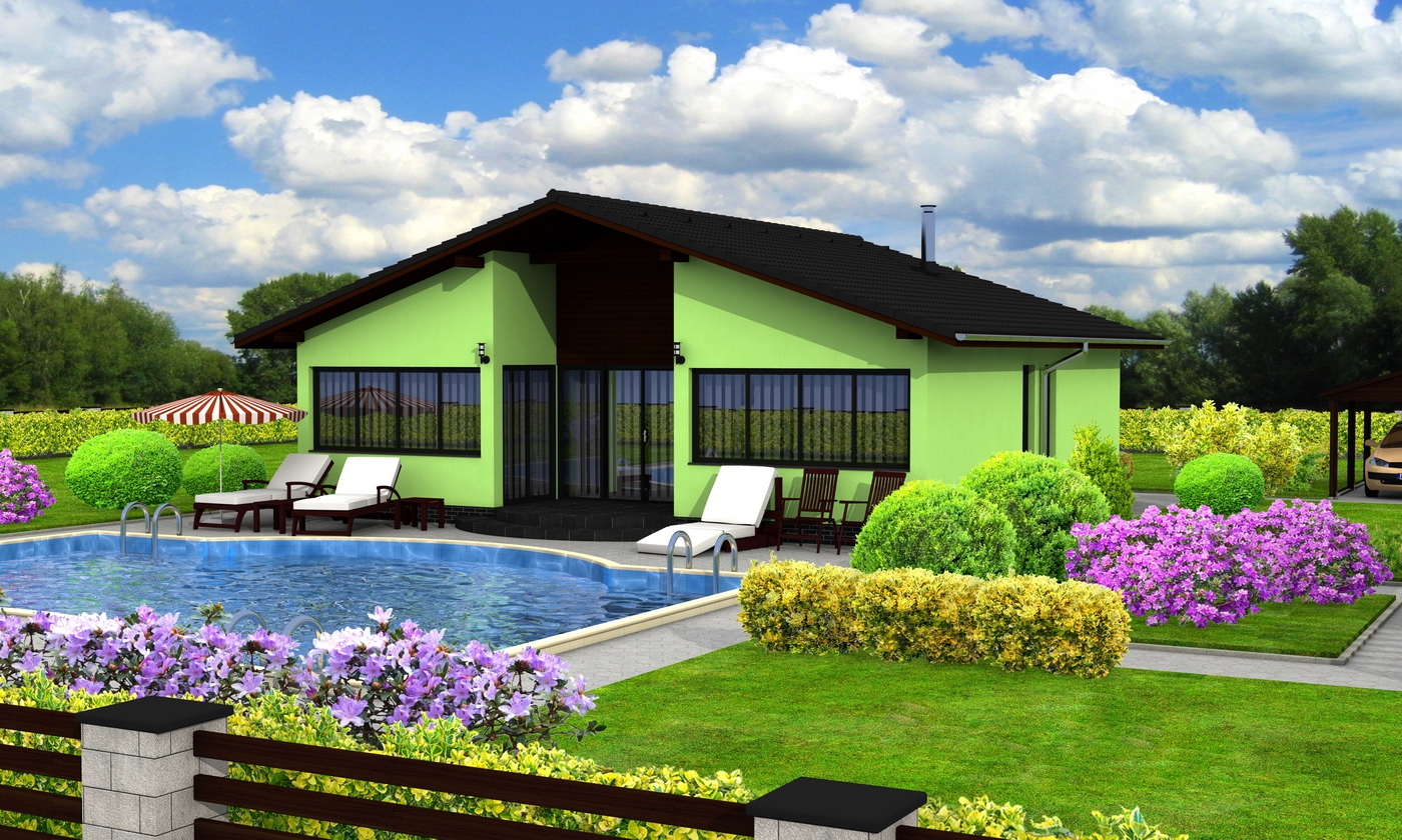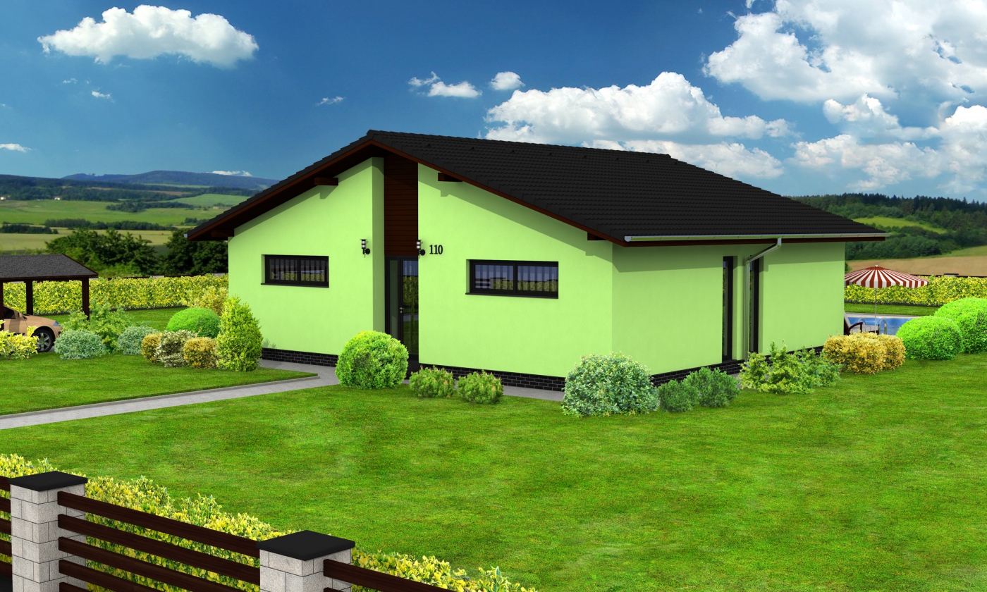 První dřevostavba postavená naší firmou v ČR ( od té doby realizovala dřevostavby ve Španělsku). Dům má prosklenou jižní část, bylo tedy třeba skleněné plochy odstínit pergolami. Ty v létě dům ochrání před přehříváním a v zimě, když je slunce nízko, nebrání pronikání slunce do interiéru a tím pádem tepelným ziskům. Dům byl koncipován jako bungalov, ale při výstavbě vznikl v II. NP mezonet, který slouží jako herna pro děti.