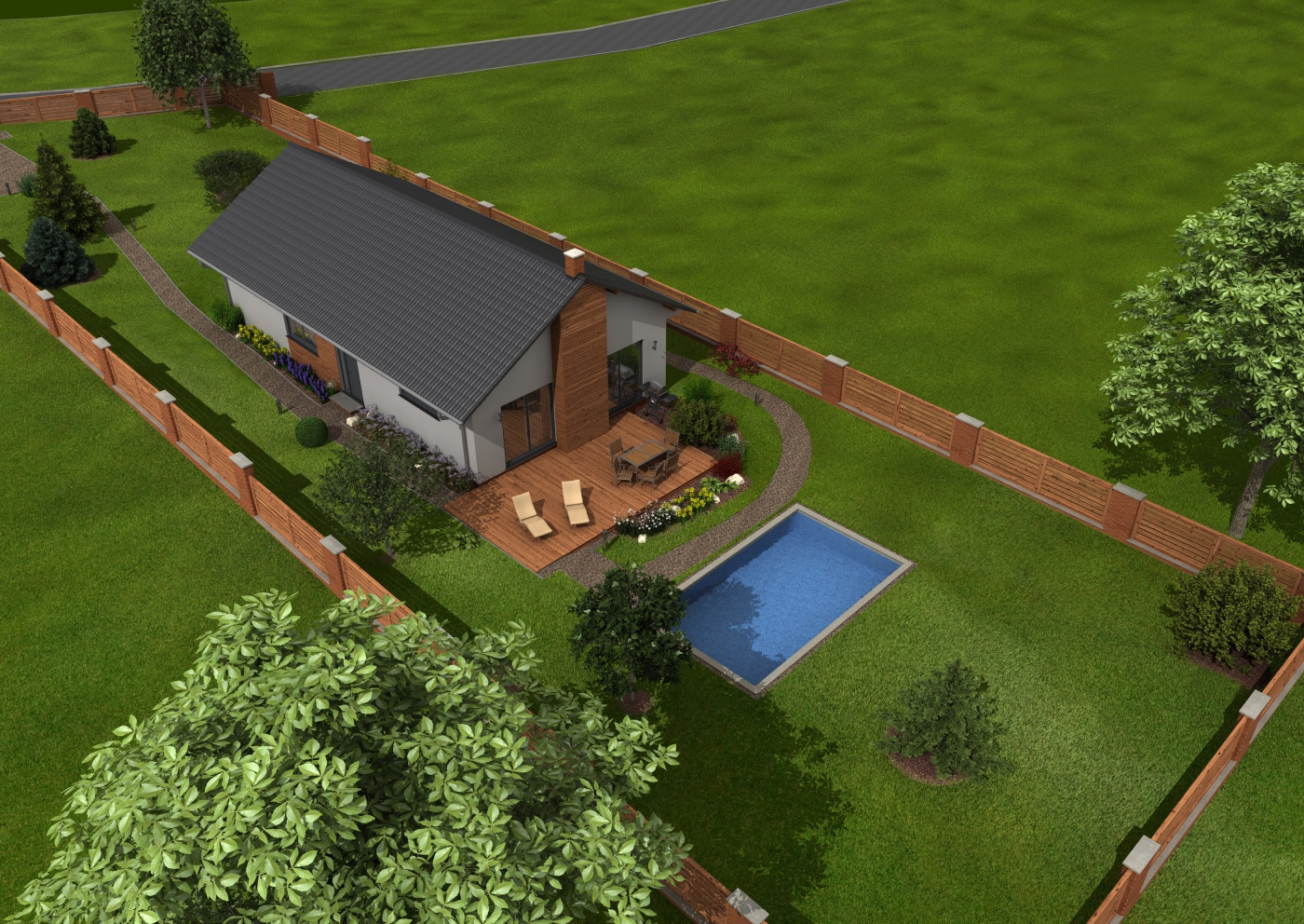 Pohodlná dřevostavba pro mladou rodinu s malými dětmi. Z obývací části domu je výhled do zahrady se vzrostlými jehličnatými stromy, za kterými vyčnívá hora Říp. Pýchou majitelky jsou velkolepé levandulové záhony, které lemují přístupovou cestu k domu a pýchou majitele je malé jezírko s rybami, k jejichž výlovu jsme každoročně přizvání :)