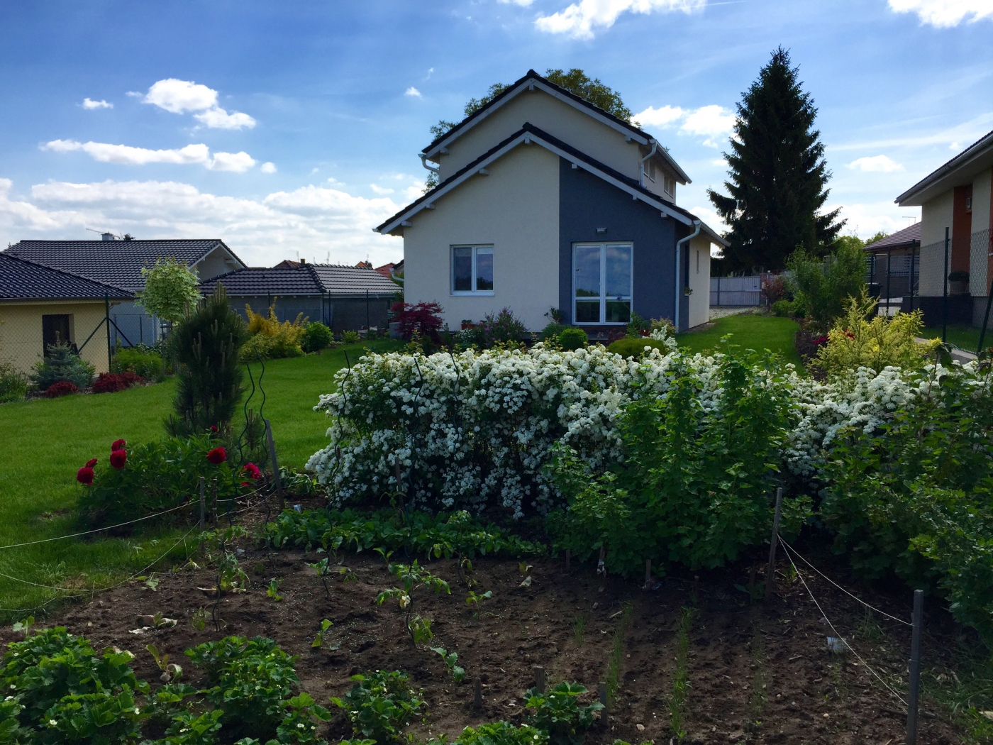 Zadání u tohoto vzhledově neotřelého domu bylo: přízemní byt pro majitelku a v druhém patře vybudovat 1+1 byt/zázemí pro dospívajícího syna. Tento dům nemá jediné okno situované na jih, v letních měsících dosahuje příjemného klima i bez klimatizační jednotky. Dům byl po deseti letech užívání osazen fotovoltaickými články na střeše.
