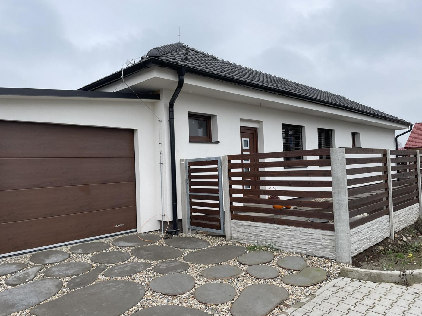 Tato dřevostavba se nachází v nové zástavbě rodinnými domy v Žalhosticích. Jedná se o komfortní a prostornou dřevostavbu bungalov s velkými prosklenými plochami, posuvné skleněné portály ústí na dřevěnou terasu se zimní zahradou, kterou jsme po dohodě s majiteli dřevostavby realizovali také my. Dále jsme se domluvili na realizaci venkovních zpevněných ploch v litém betonu v kombinaci s kamínky, provedli jsme terénní úpravy a oplocení pozemku plotem s prefabtrikovaných betonových dílů s plotovou výplní z modřínu.