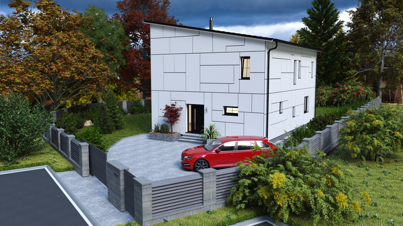 Rádi bychom představili realizaci dvoupodlažní dřevostavby v Pcherách. V této dřevostavbě jsme již po několikáté použili systém zasklení fixních výloh, který spočívá v předsazení izolačních trojskel před vlastní konstrukční plášť dřevostavby. Tím eliminujeme tepelné mosty, můžeme dosáhnout větších prosklených ploch, panoramatických výhledů a v neposlední řadě vzniká zajímavý designový prvek přiznané dřevěné konstrukce v interiéru. Dále jsme na této dřevostavbě realizovali odvětrávanou fasádu pomocí obkladu cementovláknitých desek, která má po dobarvení desek evokovat Mondrianyho obraz. Dřevostavba je realizována v pasivním standardu. Na přání zákazníka je ve východní části dřevostavby technicky počítáno s realizací budoucí lezecké stěny.
