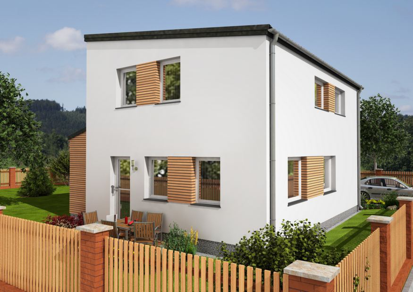 Dvoupatrový dům v těsně blízkosti Prahy. Investoři nás oslovili s tím, že jsme stavěli dům jejich známým (Lány) a že se jim dům líbí natolik, že by s pár obměnami vyšli z jejich projektu. Provedli jsme tedy individuální úpravy na přání zákazníka a pustili se do díla. Výsledkem je příjemný dům v klidném prostředí zahrádkářské kolonie s perfektní dostupností do Prahy, kde oba investoři pracují.