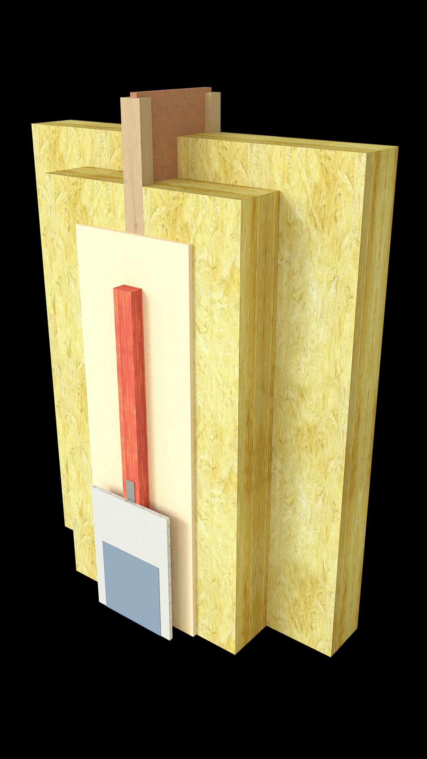 6. Minerální izolace s lamdou 0,034 (Knauf), s přeloženou spárou 150 + 150 mm