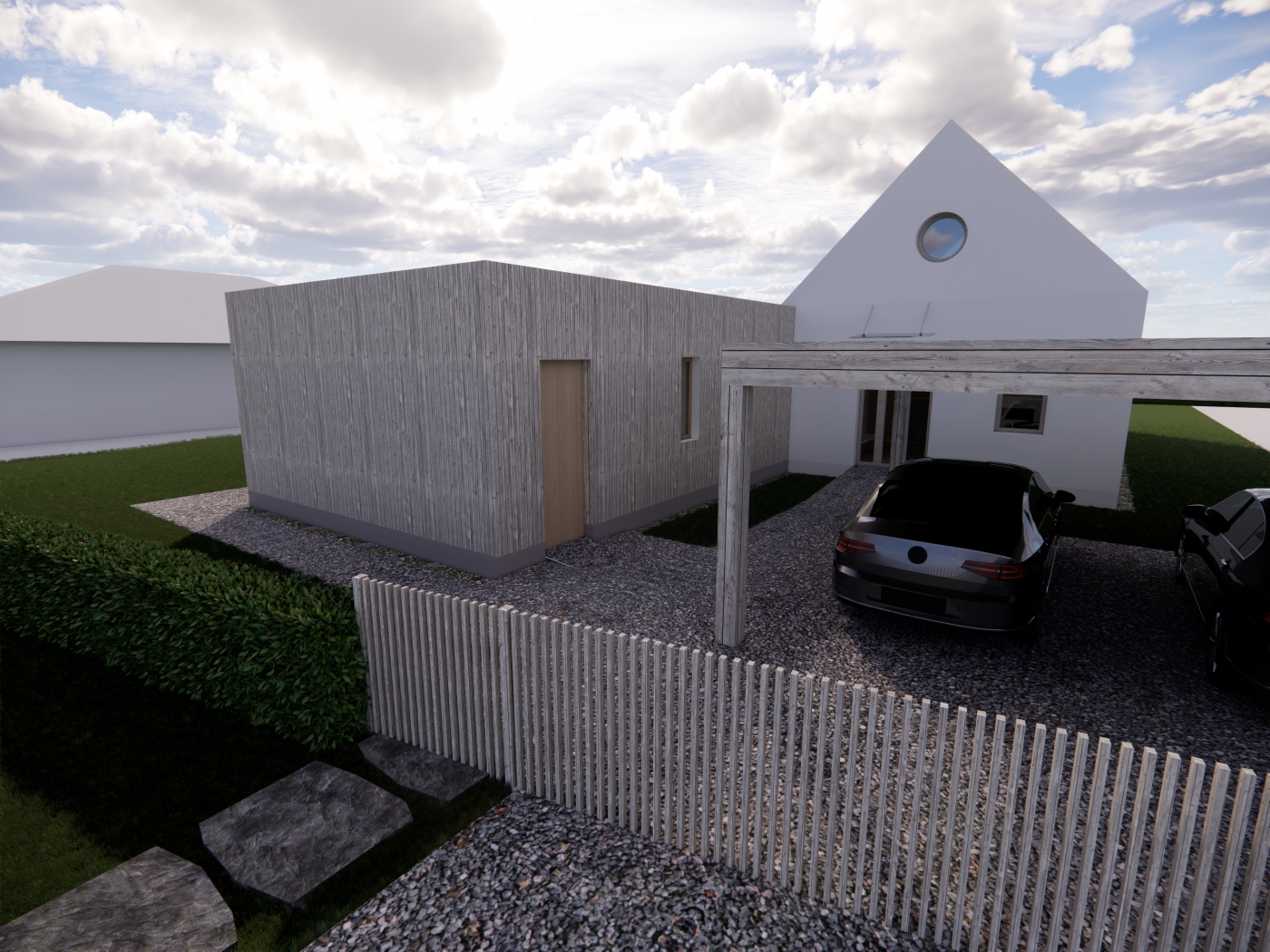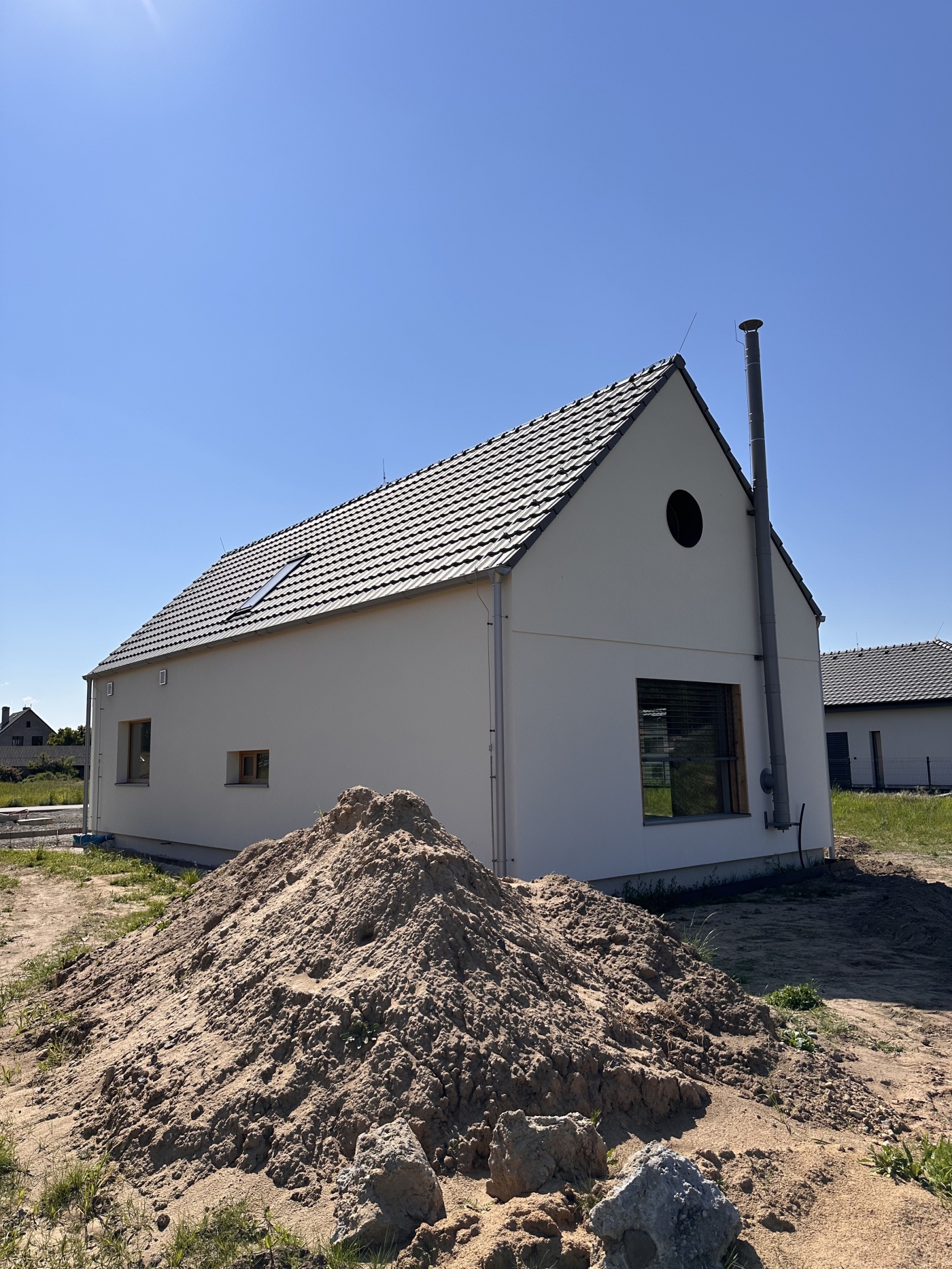 Bylo nám ctí podílet se na realizaci dřevostavby v klidné obci Kyškovice pro mladou rodinu s malými dětmi. Jednalo se o dům navržený architektem, takže nás čekala spousta výzev v podobě atypických prvků a jejich technického řešení, ať už mluvíme o kulatých oknech ve štítu, přes netypické schody, které zároveň tvoří knihovnu, až po mezonetovou pracovnu. Vzhled domu, ačkoli je v moderním stylu, přesto nijak neruší okolní vesnickou starou zástavbu. Věříme, že zákazníci zde prožijí mnoho spokojených let v blízkosti lesa a přírody přesto s ideální dostupnosti do blízkého města.