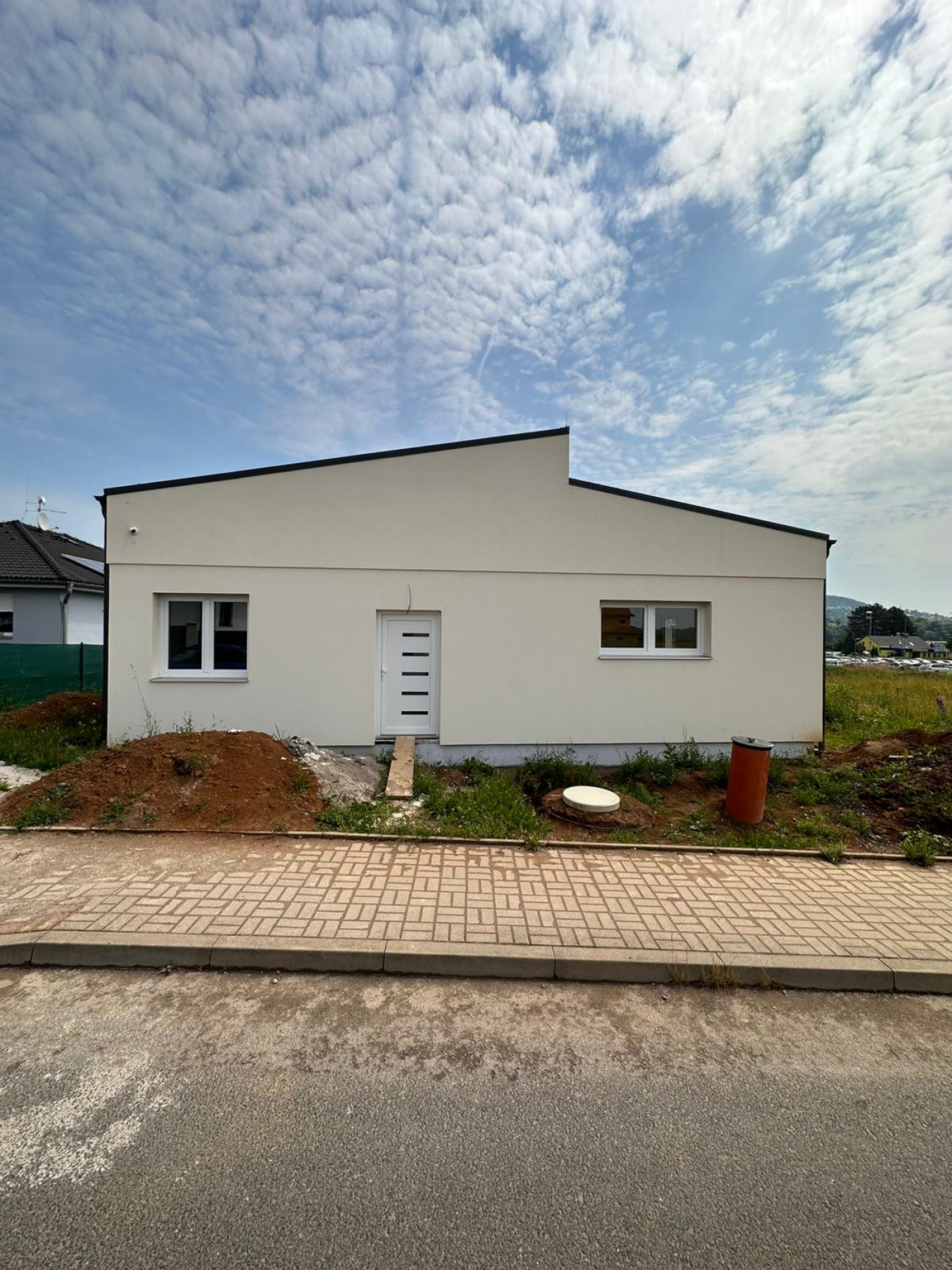 Bungalov, který byl zrealizován pro čtyřčlenou rodinu v nové zástavbě v Ústí nad Labem, Skorotice. Půdorys domu vychází z našeho oblíbeného a několikrát postaveného bungalovu Mayo 120 m2. Zákazníci si přáli dodat domu moderní a neotřelý vzhled, byla tedy vyprojektována atypická pultová střecha. Dům má přípravu pro lokální rekuperaci.